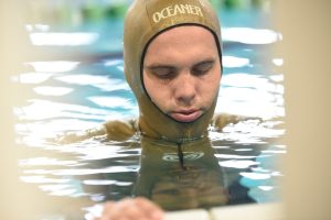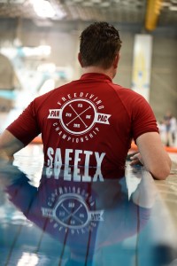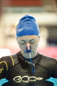Two national records were set this morning. Azam Hamid from Malaysia, at one with the pool in his perfectly azure blue wetsuit, set a national record for Malaysia with a 5 minute and 29 second breath hold. Long time friend of Brisbane Freedivers Jonathan Chong seemed very happy with his performance of 6 minutes and 17 seconds which earned him a National Record for Singapore. In fact he “looked a little too jovial”, commented official judges on Chong’s ecstatic surface protocol.